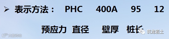 预应力高强混凝土管桩(代号PHC)、预应力混凝土管桩(代号PC)、预应力混凝土薄壁管桩(代号PTC)。