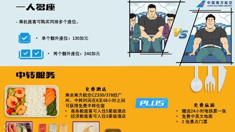 海外回穗--在广州,南航为中转旅客提供一流的中转服务。为航班衔接时间在8-48小时的旅客提供经济舱三星级以上、公务舱5星级酒店单人单间的免费住宿,次日早餐以及机场与酒店的免费接送服务。51个国家的公民可通过广州144小时免签证中转服务,选择免费的广州巴士游,前往参观花城广场,广州大剧院,广州塔,陈家祠以及荔枝湾涌等著名羊城景观,更可享用精致的广式点午餐。对于喜欢自由安排行程的旅客,南航也免费提供广州地铁一日通票,陈家祠以及地忒南越王博物馆门票,让旅客自由安排游广州。