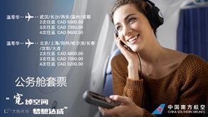 商务出行-为了满足商务旅客的出行需求,南航推出了旅行目的地涵盖整个亚太地区、一年往返多次的公务舱套票产品。商务舱套票在价格上非常优惠,例如从温哥华始发经广州中转至北京,上海,南京,杭州,大连等国内主要大城市,购买套票一次往返要节省800加币以上。商务舱套票可以让旅客非常灵活的安排行程,一年之内可以自由选择出行日期,广州中转时停留时长可以自由规划,改期与退票条件宽松。