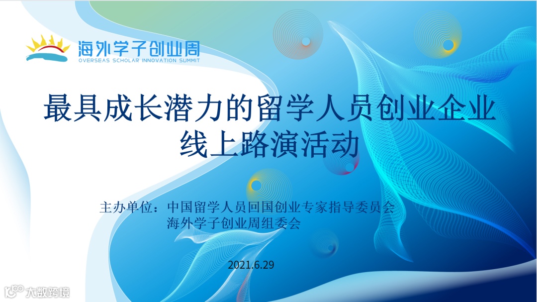 6月29日上午,2021海外学子创业周正式启动。中国留学人员回国创业专家指导委员会,会同海创周组委会共同举办“最具成长潜力的留学人员创业企业线上路演”活动,全程直播。