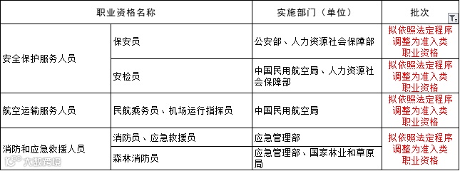 与公共安全、人身健康等密切相关的职业(工种)拟依法调整为准入类职业资格。
