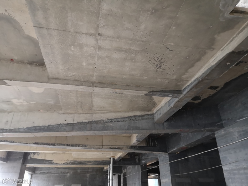经12层9个独立柱的试验效果检测,在拓展度满足小于650mm的条件下,对柱节点位置处的混凝土C70混凝土流浆进行统计汇总,各梁流浆平均长度为0.212m,且均小于0.3m。