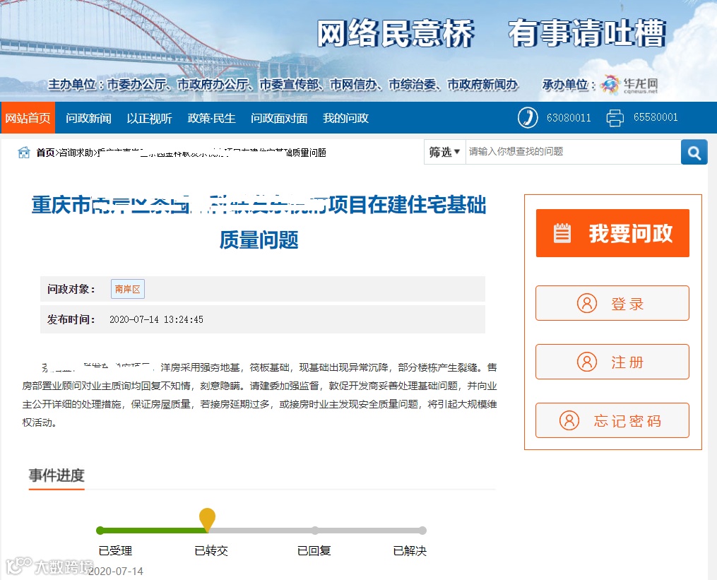 该项目计划8月交房,出现事故经业主发现上报相关主管部门!