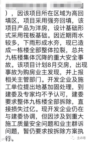 开发商及施工方要求基础加固,被建委专家否定!建委要求将发生不均匀沉降的9栋楼全部拆除,直接损失将过亿!