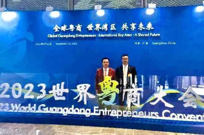 北京时间9月22日上午,由中国广东省政府、广东省政协和全国工商联联合举办的2023世界粤商大会在广州隆重开幕。加拿大粤商总会共同会长赵财强、王文康应邀出席大会。