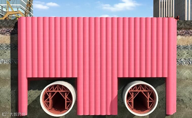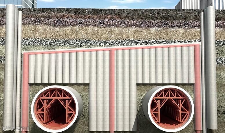 二是核心区土体采用1.8米大直径MJS工法微扰动加固。控制土体内压力,避免挤土效应的出现,减小施工对周边土体的扰动,在隧道顶部及两侧形成门型固化保护壳。