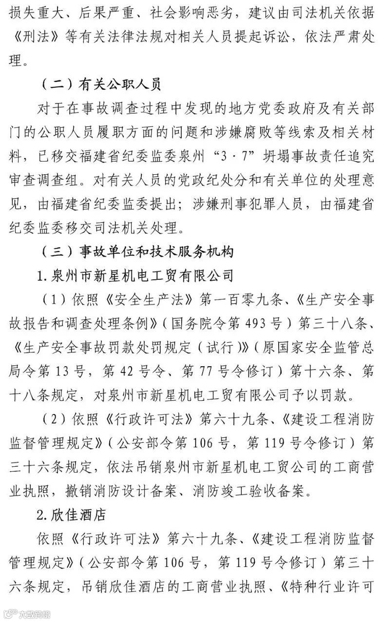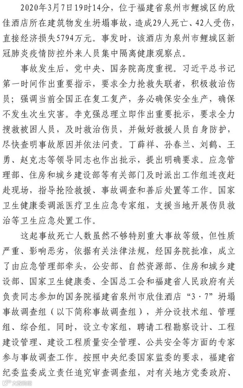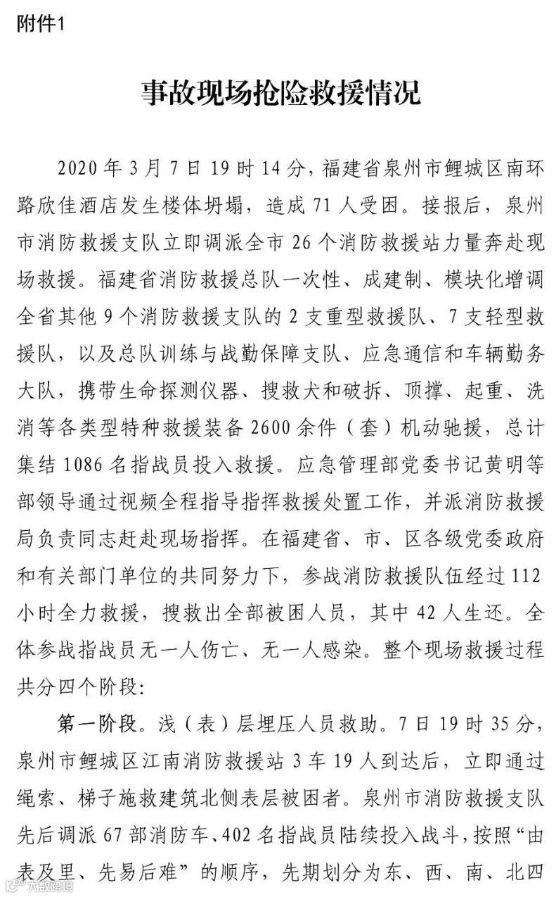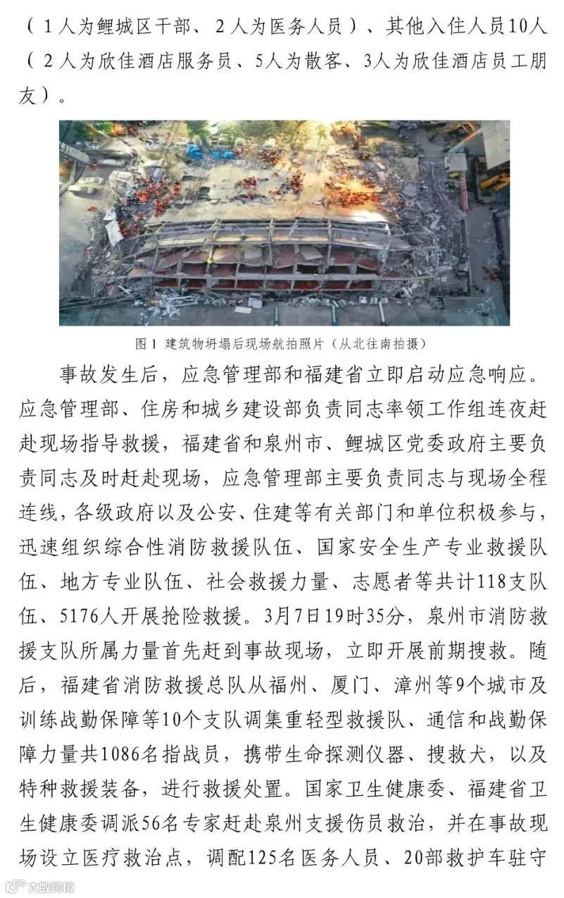 近日,国家应急管理部公布福建省泉州市欣佳酒店“3·7”坍塌事故调查报告全文