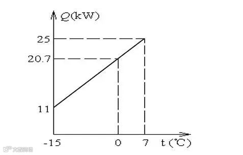 通常厂家给出的供热量是室外气温7 ℃(室温20 ℃)时的标准工况。