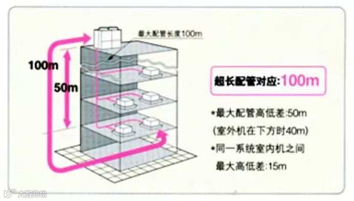 在设计中要考虑容量修正系数,在系统设计时要尽量使一个系统的室内外机之间的距离最短,高差最小,对高差大、管路长的系统要适当增加机组的容量,这样才能保证空调使用的效果。