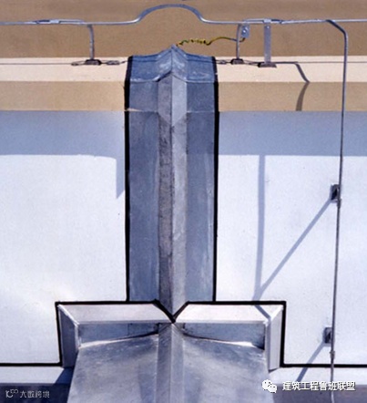 屋顶伸缩缝主要有伸缩缝两侧屋面标高相同处和两侧屋面高低错落处两种位置,当伸缩缝两侧屋面标高相同又为上人屋面时,通常做防水油膏嵌缝,进行泛水处理;为非上人屋面时,则在缝两侧加砌半砖矮墙,分别进行屋面防水和泛水处理,其要求同屋顶防水和泛水构造。在矮墙顶上,传统做法用镀锌铁皮盖缝,近年逐步流行用彩色薄钢板、铝板甚至不锈钢皮等盖缝。