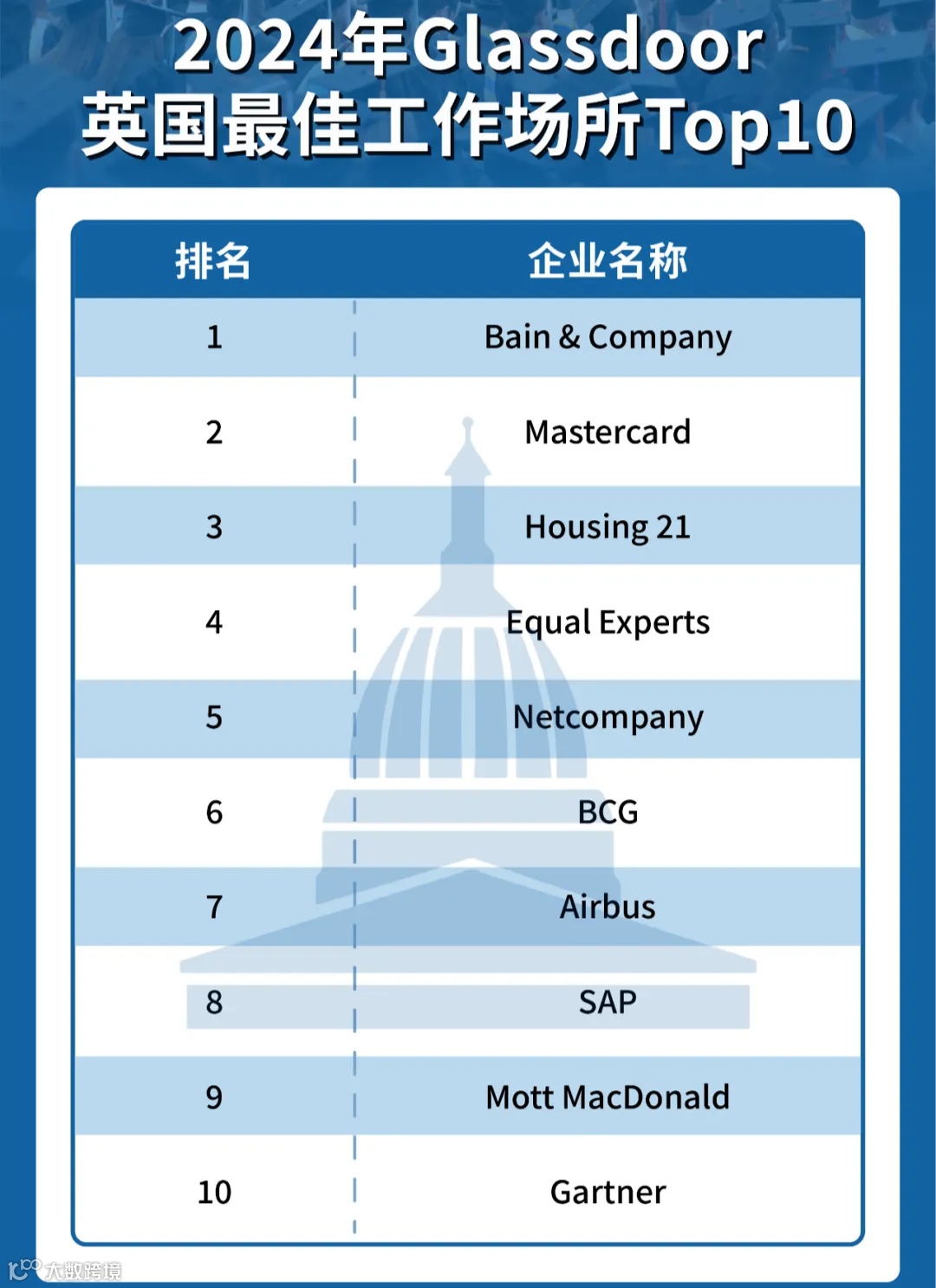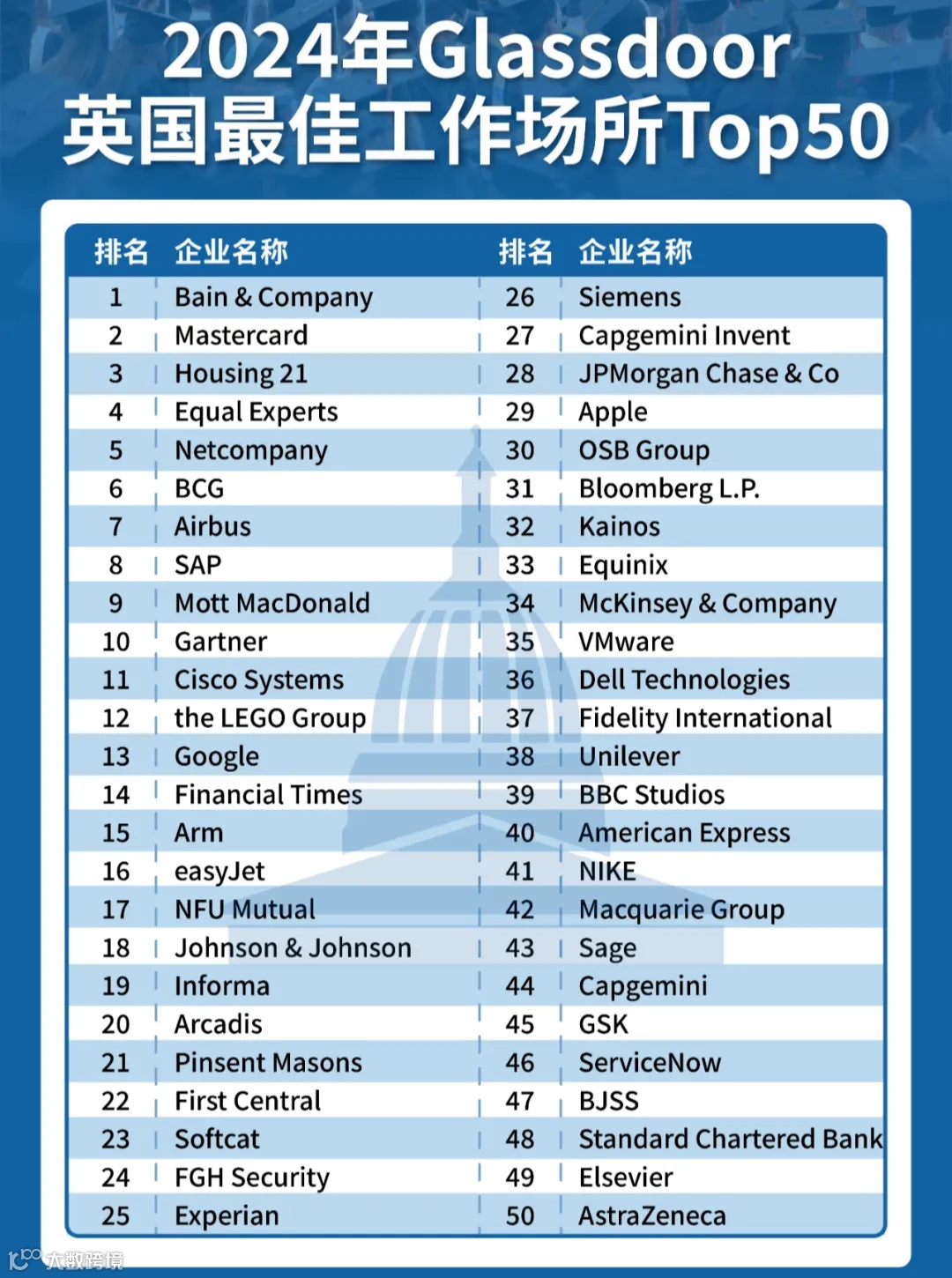 近日,堪称企业版“大众点评”网站的Glassdoor发布了2024年英国最佳工作场所排名,今年上榜的50家公司又是一轮“大换血”!