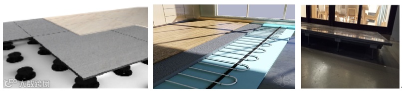 无地暖地面最小面层高度约60mm,有地暖地面,最小面层高度约110mm。采用干法地面,前期设计应对装修效果、成本增量及净高等充分考虑,以免影响业主感受。采用石材、地砖的干法地面,空鼓感相对较强,与普通地坪相比使用效果有一定下降。
