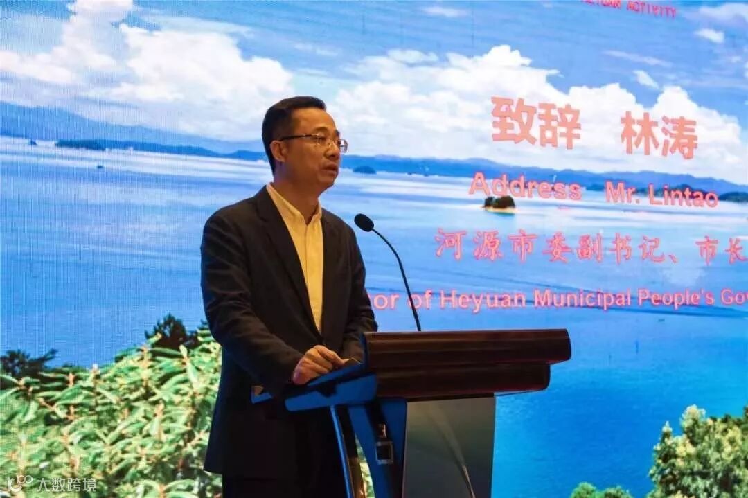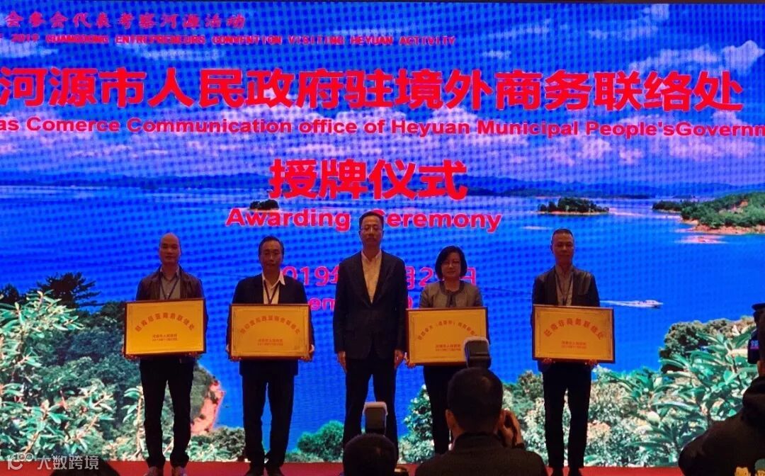 市长林涛向河源市政府驻境外商务联络处颁发牌匾