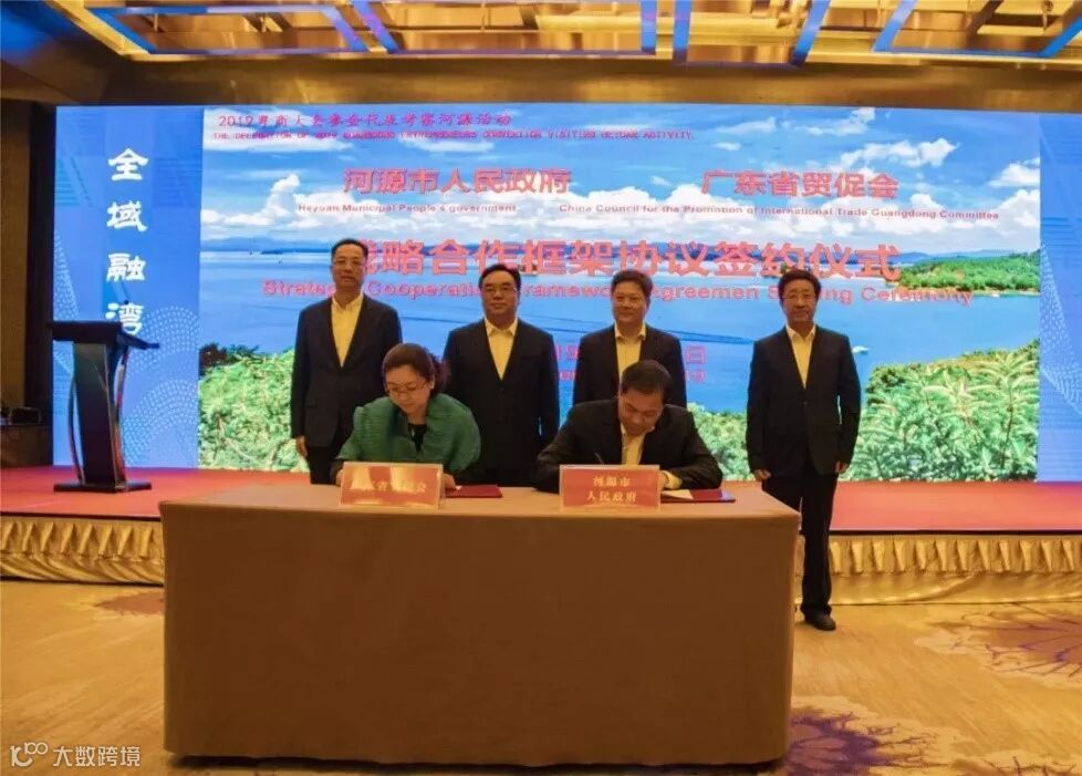会上,河源市市委常委、常务副市长黎意勇向与会嘉宾推介了河源投资环境。随后,河源市市政府与省贸促会签订了战略合作框架协议。根据合作协议,省贸促会将通过其管理或指导、联系的广东省驻境外经贸代表处、海外粤商会、双边企业家理事会等海外经贸服务平台及境外友好合作商协会组织,为河源企业“引进来”、“走出去”开拓国际市场搭建交流合作渠道,并发挥上述平台优势,向河源引荐招商引资项目;省贸促会将向有需要的河源企业提供出证认证、商事海事调解、仲裁、法律顾问、经贸摩擦应对、外经贸法律风险防范培训、专利商标代理、知识产权纠纷解决等服务,并对河源市在境内外组织和举办的各类专题招商推介会、经贸论坛和研讨会等贸易投资促进活动提供支持和协助。黎意勇与省贸促会副会长崔爽代表双方签约。