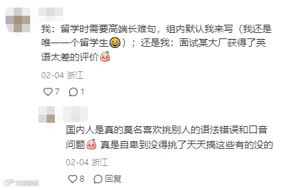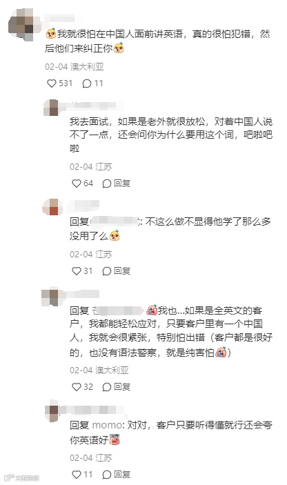 在外说英语其实反而不怕面对外国人,最害怕的是自己人。遇到语法警察的概率极高,大抵是自认为学得精了些的英语便高人一等,忘记了语言的根本用处是为了有效沟通。