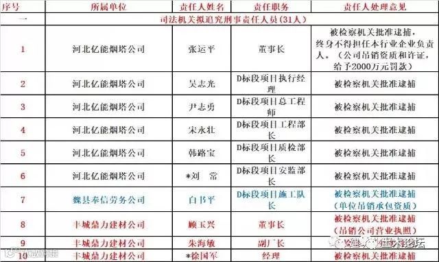 经国务院调查组调查认定,该起事故为生产安全责任事故,31人被采取刑事强制措施。给予38人党纪政纪处分、9人诫勉谈话、通报、批评教育。2017年9月15日,国务院严肃处理江西丰城发电厂“11·24”冷却塔施工平台坍塌特别重大事故。