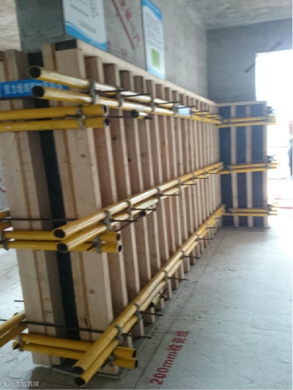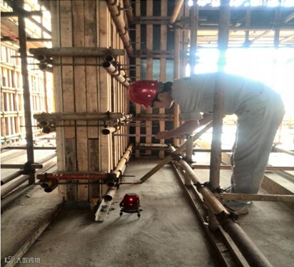 4)模板安装必须作到定位正确,支撑牢固,模板平整、垂直。模板缝隙应嵌塞好,梁柱等节点间模板连接清晰、固定牢固。由专人负责检查复核。