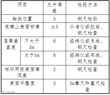 模板安装允许偏差: