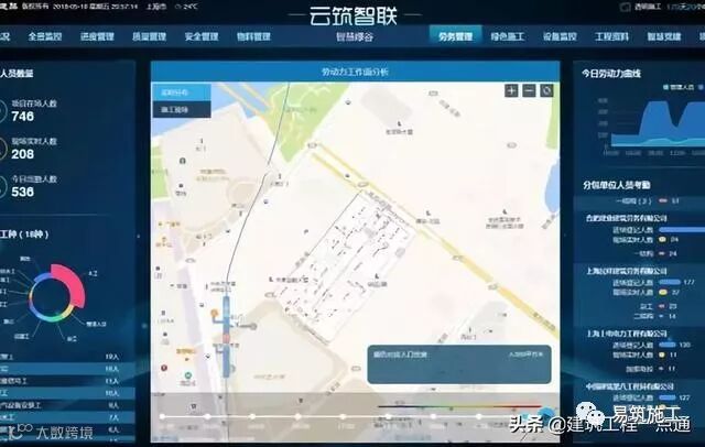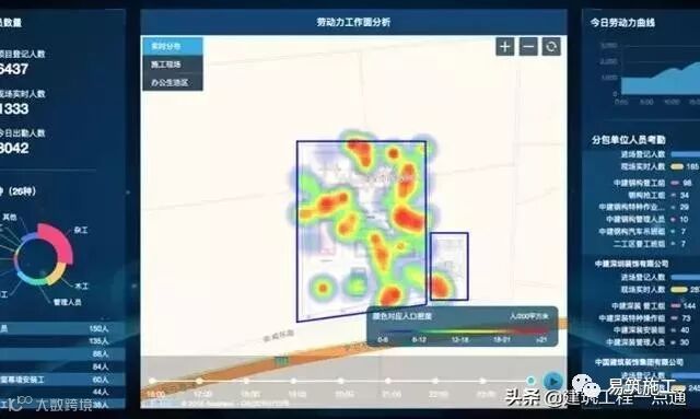 基于劳务工人实名制,使用“人脸识别系统”,将工人的单位、工种、考勤、安全教育、个人信息、信用评价等录入系统,另外,人员定位与建筑工人实名制管理平台中的信息绑定,可实时查看现场工地人流热力图和单个工人具体的位置信息。