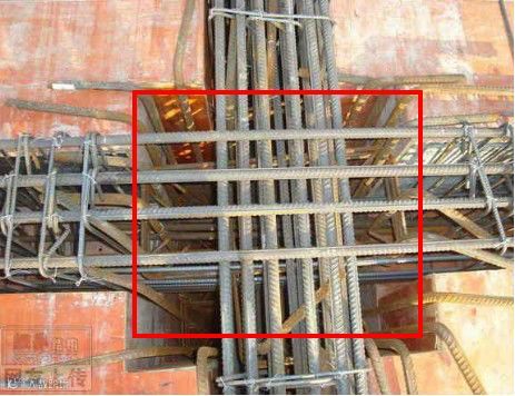 7)砼等级相差较大的梁柱接头不用钢丝网等进行拦堵或拦堵不牢固。