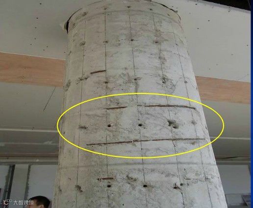 6)施工缝不凿毛,如,柱墙施工缝处未将松散的混凝土、浮浆清除。