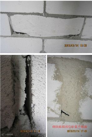2)砌块不提前湿水,砌体施工时干砖上墙。