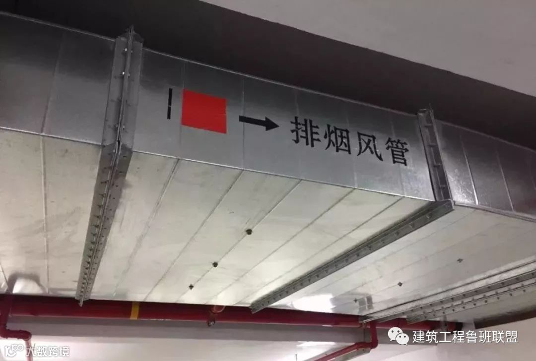 ✔ 排烟管道安装,法兰采用倒角法兰,美观实用,标识清楚