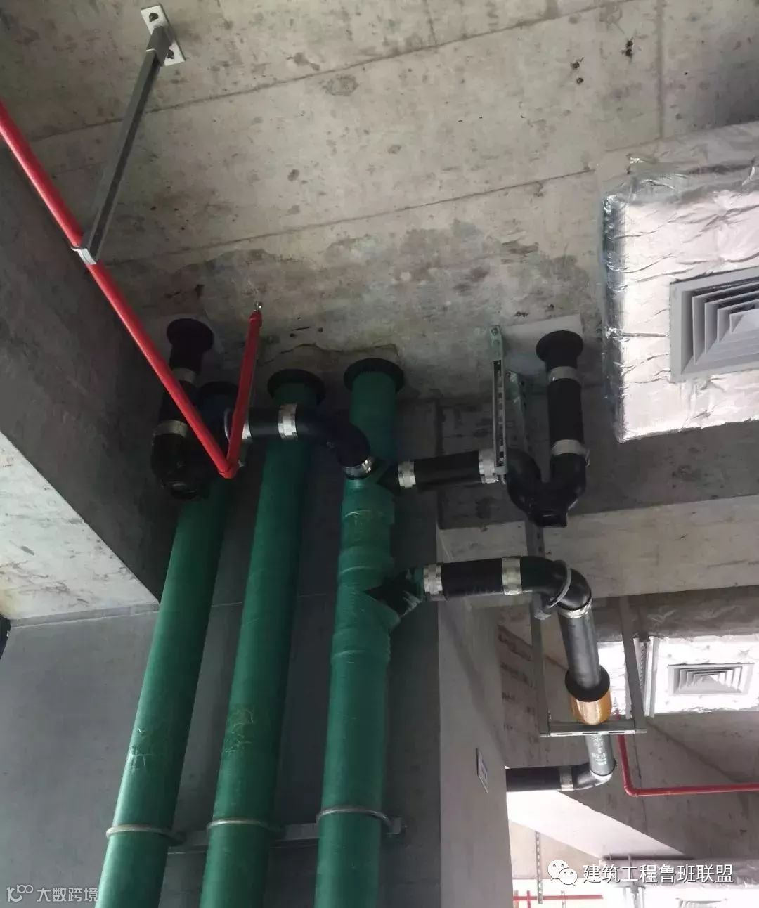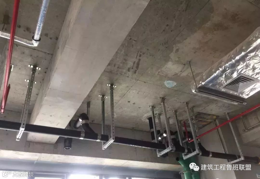✔ 空调水管道,坡度正确,支架布置合理,保温整齐美观