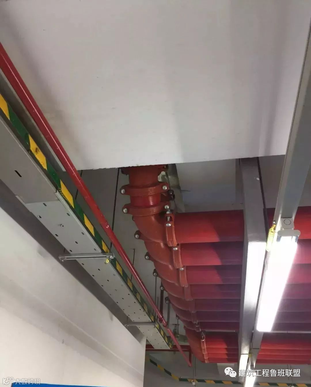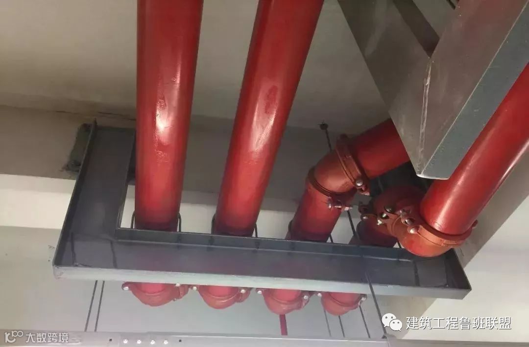 ✔ 消防喷淋管道间距一致,标识清楚、成排成线