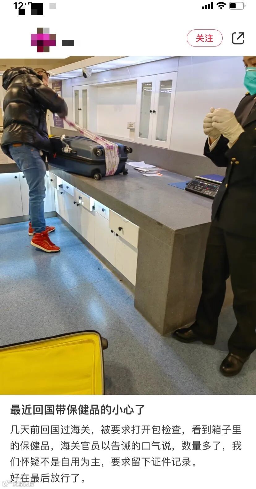 有网友表示,自己最近回去时候,看到行李都是一件件过安检被检查,自己带的保健品多了,结果都被警告和留下证件记录,这位网友表示以前从来没有遇到过这种情况。