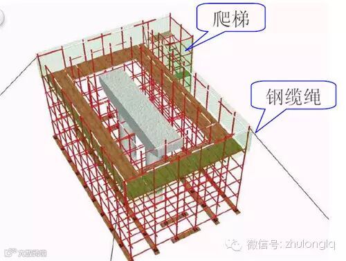 1、施工上下爬梯、梁板间的连接通道采取钢管搭设,下铺钢板或硬质木板(参考脚手架爬梯)。