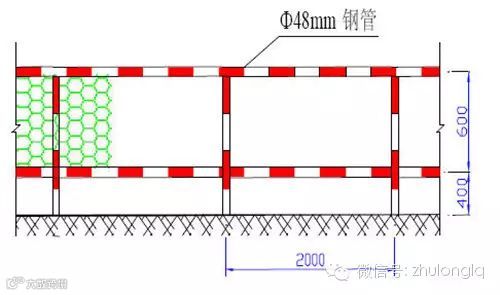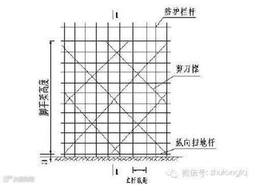 2、采用单管立杆扣件式双排脚手架搭设,钢管直径Φ48mm。脚手架外侧立面设置剪刀撑,剪刀撑在同一立面上必须封闭,且四面必须同样形成封闭。