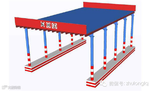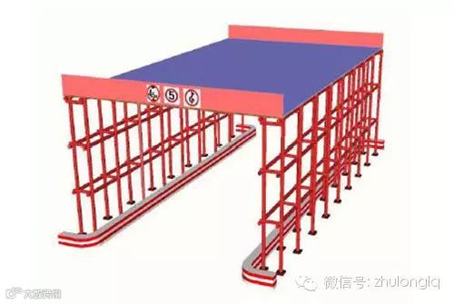 2、防护棚进出口两端至少宽出梁体边缘1.5m,防撞墩宽度0.5m,高度0.5m。3、必要时设置岗哨监视管理。
