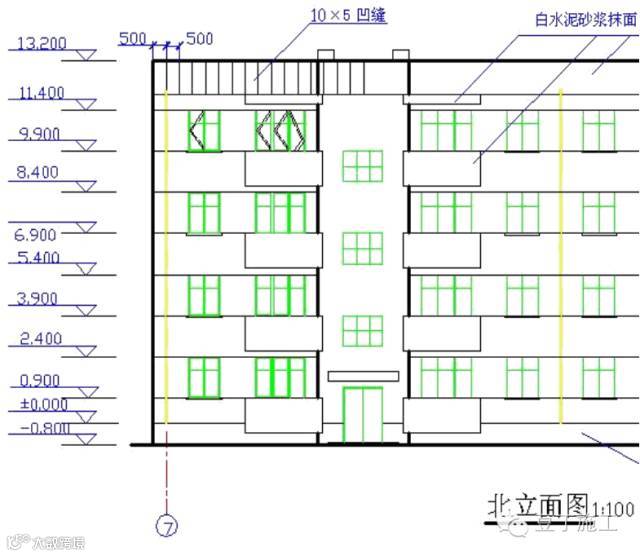 2.从立面图上了解建筑的高度。
