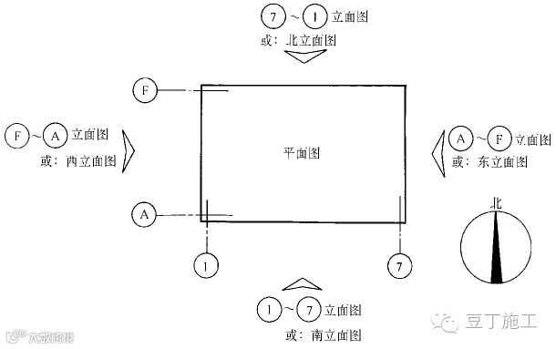 3、用建筑平面图中的首尾轴线命名:按照观察者面向建筑物从左到右的轴线顺序命名。