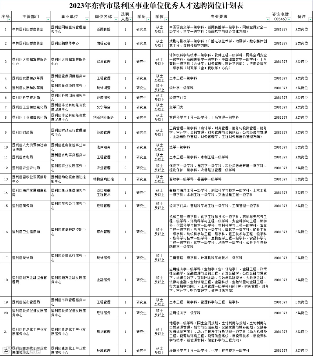 计划选聘23人,具体要求详见《2023年东营市垦利区事业单位优秀人才选聘岗位计划表》。