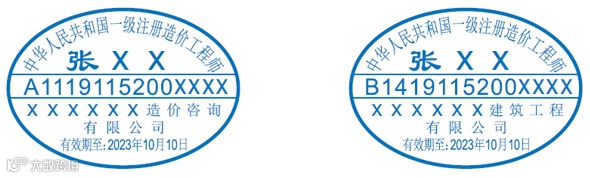 (一)造价工程师执业印章的形状统一为椭圆形,长轴为50mm、短轴为35mm;