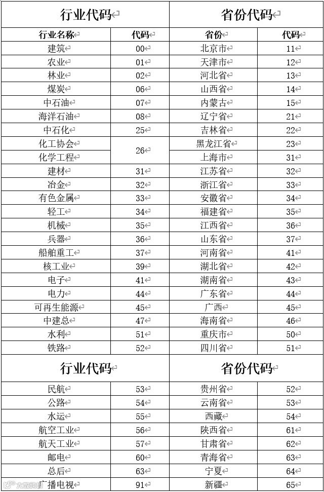 (五)第7、8位为行业管理机构代码,取值见代码表。