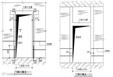 (4)水平系梁设置。当砌体填充墙的墙高超过4m时,直在墙体半高处设置与柱连接且沿墙全长贯通的现浇钢筋混凝土水平系梁,梁截面高度不小于60mm。