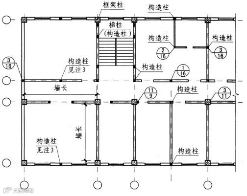 (5)构造柱设置。砌体填充墙的墙段长度大于加时或墙长大于2倍层高时,墙顶宜与梁底或板底拉结,墙体中部应设钢筋混凝土构造柱。