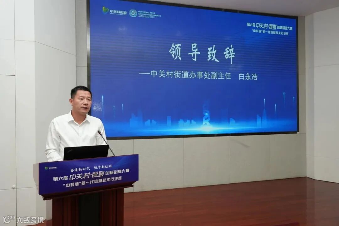 中关村街道办事处副主任白永浩为复赛致辞。白永浩副主任表示中关村作为科技创新出发地、原始创新策源地和自主创新主阵地,一直致力于激发创新创业活力,街道将继续利用好区位优势,进一步打造