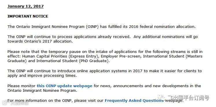 在今年1月12日的时候,安大略省官网公布对于:安省EE项目-HUMAN CAPITAL PRIORITIES (EE), 雇主担保项目-EMPLOYER PRE-SCREEN, 硕士毕业生移民项目-INTERNATIONAL STUDENT (MASTERS GRADUATE) AND 博士毕业生移民项目INTERNATIONAL STUDENT(PhD Graduate) 暂时停止接收申请。