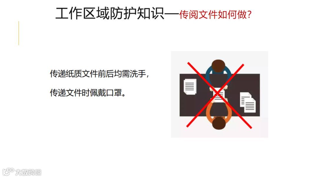 传递纸质文件前后均需洗手,传阅文件时佩戴口罩。