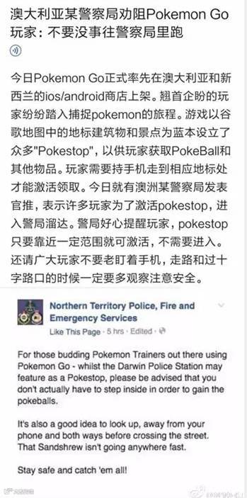 全球风靡的Pokemon go,特别是在澳大利亚的小伙伴,警察可发愁了。澳洲警察局还特别在Facebook主页做出了警告说明。