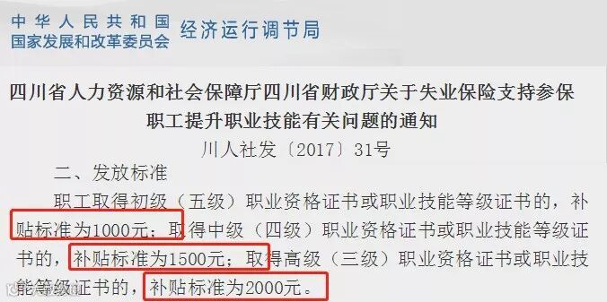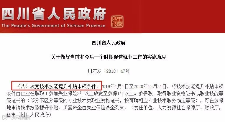 注意:四川2018年12月四川省人民政府发布《关于做好当前和今后一个时期促进就业工作的实施意见(川府发〔2018〕47号)》,明确提出:放宽技术技能提升补贴申领条件。