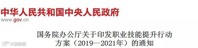 2019年5月国务院印发《职业技能提升行动方案(2019-2021年)》: