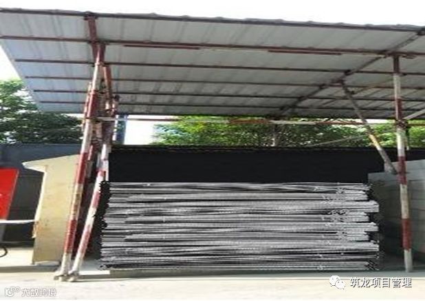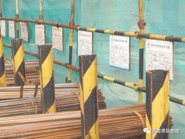 A13:条形捆扎钢筋原材料堆场要求场地硬化地面及不积水,不同型号的钢筋用槽钢分隔,每种型号钢筋分别挂醒目标识牌,堆放限高≤1.2米。条形捆扎钢筋原材料堆放标识牌要求:标注清楚生产厂家、型号、规格、炉(批)号、生产日期、进货日期、检验日期、检验编号、检验状态、责任人;堆放限高≤1.2米。