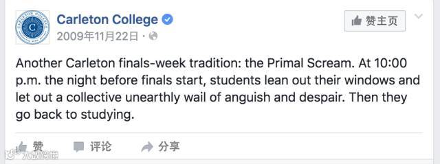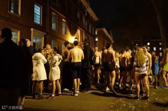 哈佛大学每年期末考试前都有一个特别的节日叫做Primal Scream,中文叫做“原始的呐喊”,一堆被final逼疯了的人在期末前一天晚上集体脱光光边跑边聊天,哈哈,这画面想想也是很美。。。
