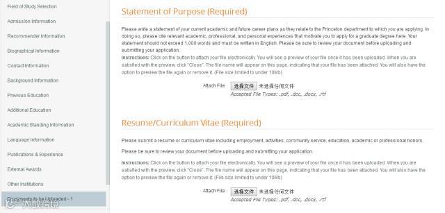 3 上传相应文书PDF版本(CV/Resume, Personal Statememt);