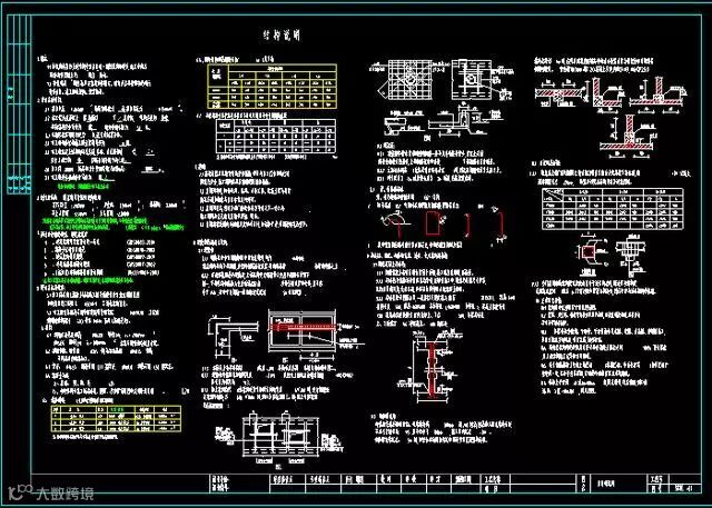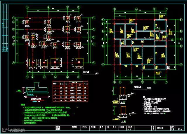 ④结构图中的关键:掌握基础、墙、梁、柱、板、屋盖系统的设计要求、具体尺寸、位置、相互间的衔接关系以及所用的材料等。